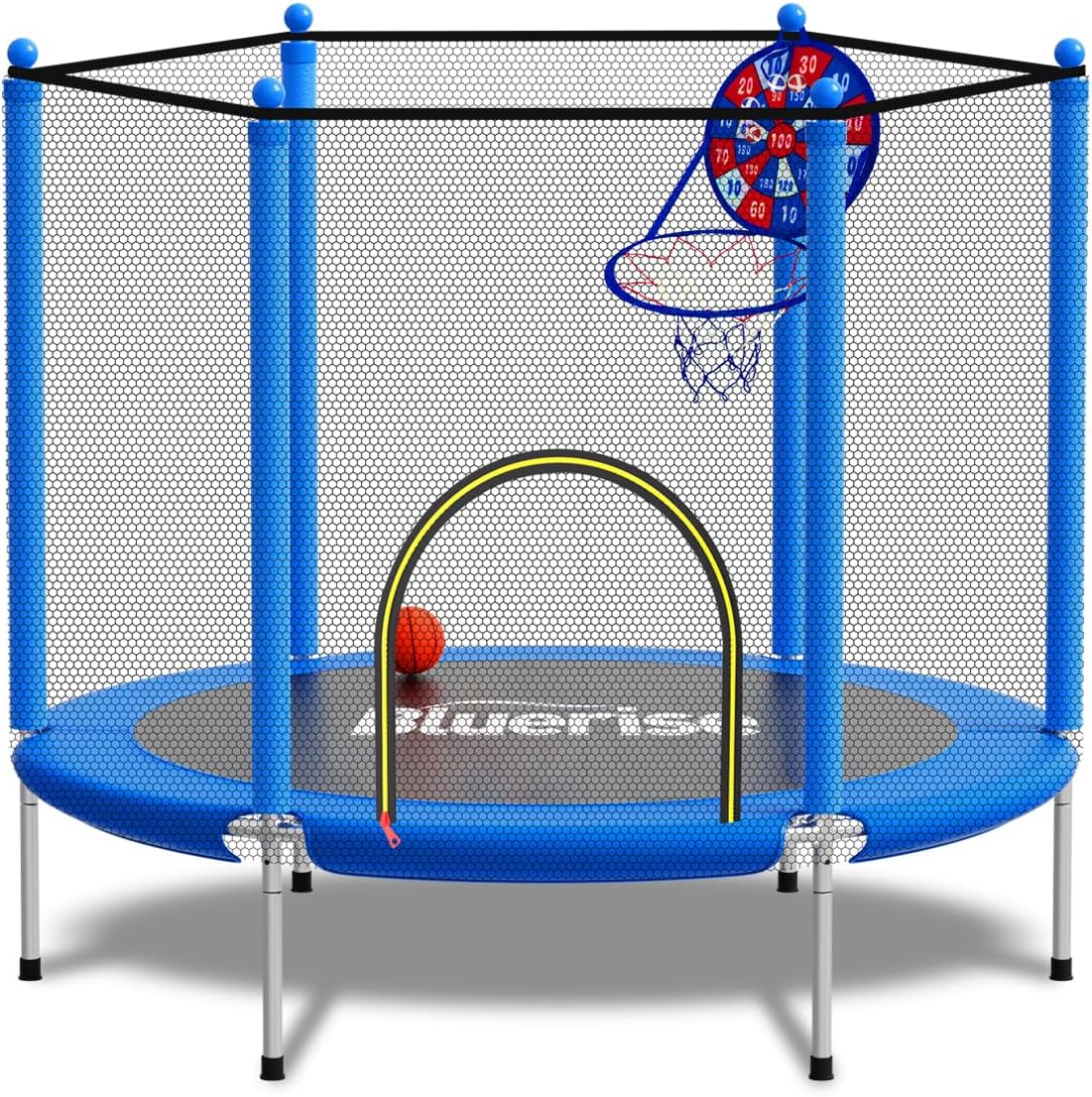 BLUERISE 55in 6ft Toddler Trampoline with Enclosure Net and Basketball Hoop Attachment