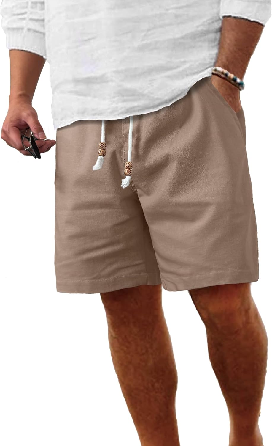 - Comdecevis Men's Linen Shorts: Casual Elastic-Waist Summer Shorts with Pockets
