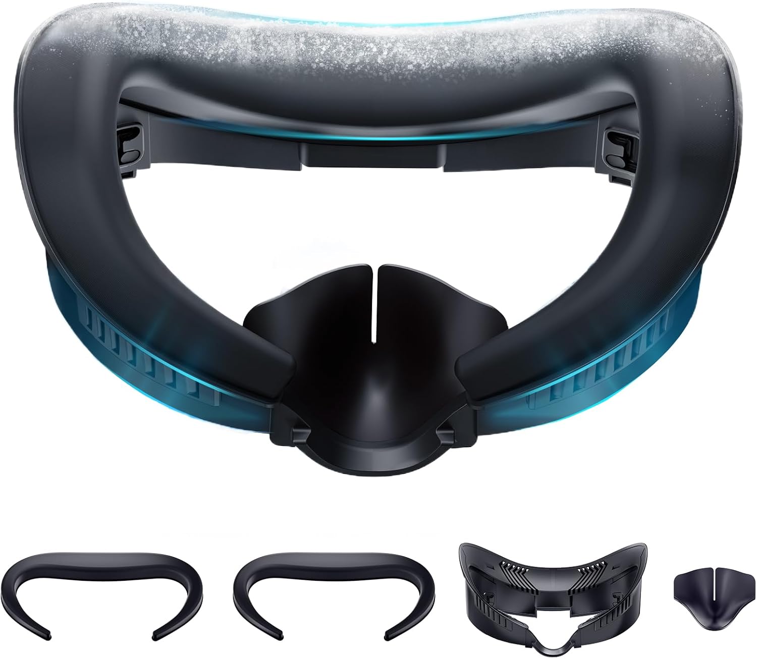 The pad uses an ice gel surface and breathable fabric to limit sweat and skin irritation during intense gaming or long mixed reality sessions. It’s easy to remove and wash, so hygiene is simple to keep up between uses. Two replacement cushions are included, which helps when one is drying after cleaning or if you want to rotate for longevity. An ergonomic cut and pressure‑free fit aim to preserve passthrough camera alignment while improving facial comfort. 🎯