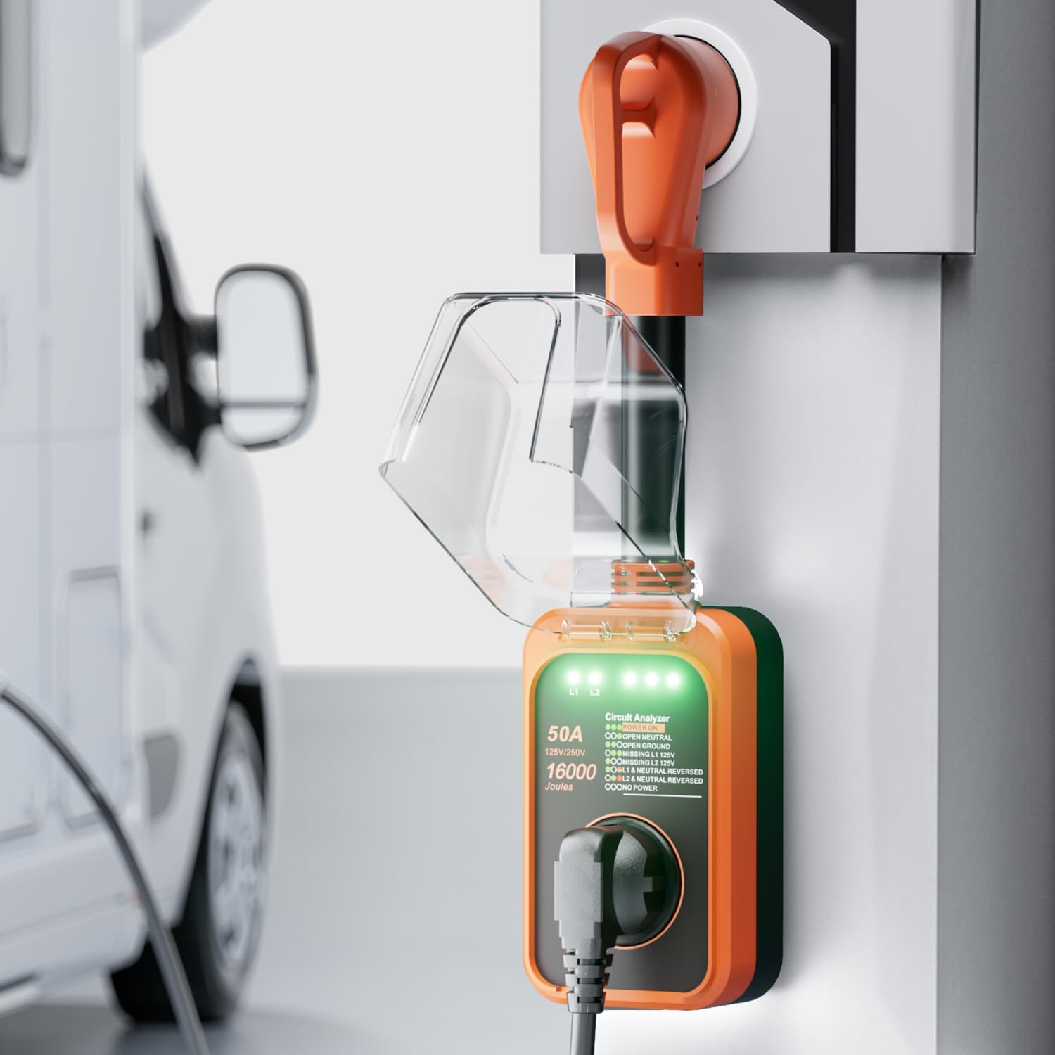 It’s not a miracle cure for every electrical problem on the planet, but on paper it’s a practical “in-between” layer: it connects to a standard 50-amp outlet, helps you spot trouble early, and wraps the electronics in a waterproof cover meant for outdoor use. If you’re the type who likes to know what’s happening before you plug everything in, the circuit-analyzer display is the main reason this one stands out.