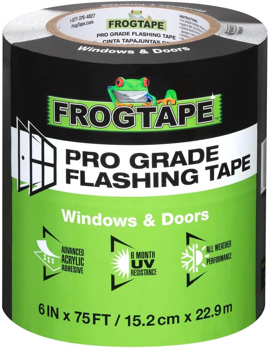 FrogTape Pro Grade Flashing Tape for Windows & Doors (Black, 6 in. x 75 ft) — All-Weather UV-Resistant Flashing Tape