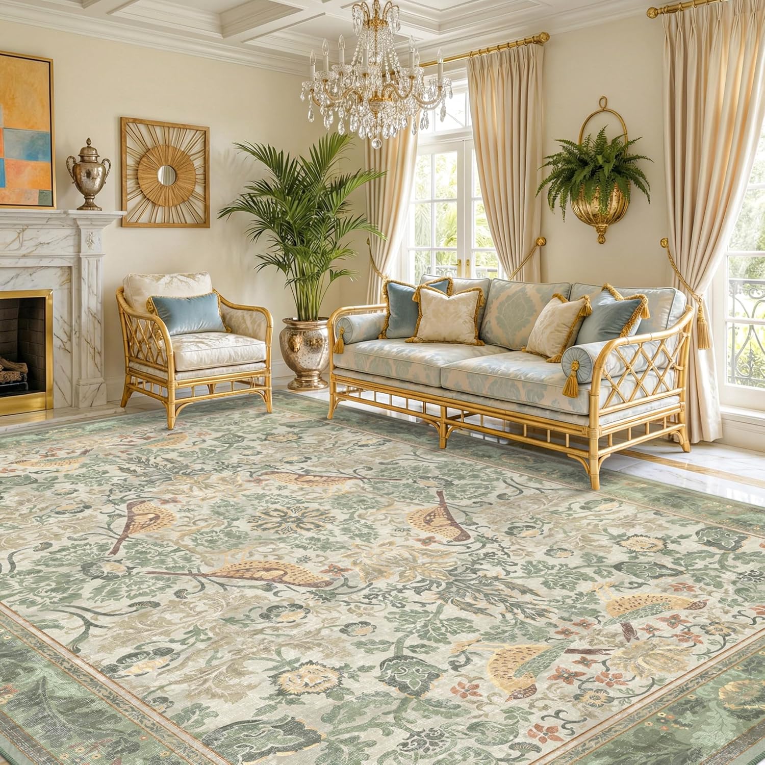 This rug tends to make sense if you want an aesthetic “statement” look without sacrificing maintenance convenience. The bird-and-botanical motif works especially well if your style leans cottagecore, traditional, or maximalist, where ornate patterns and warm neutrals feel at home.