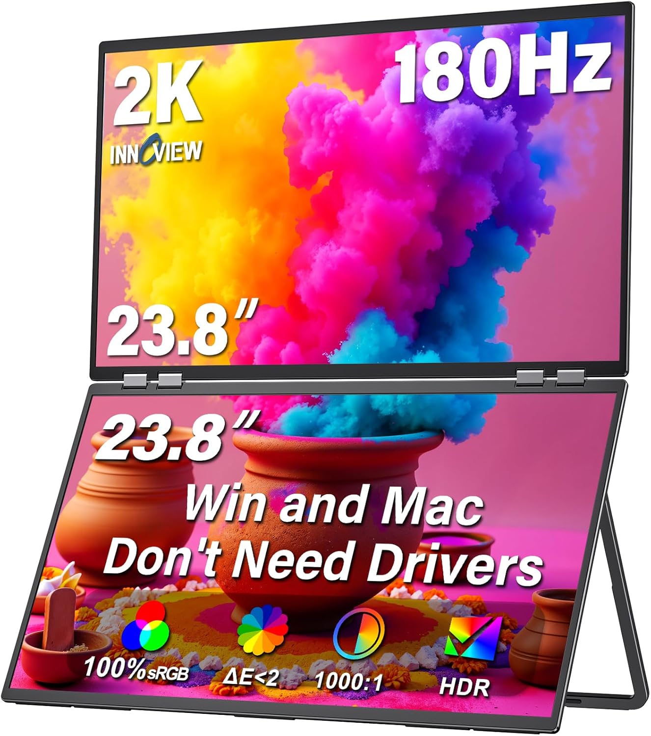 InnoView 23.8" Dual Portable Monitor (180Hz, 2560 x 1440, 100% sRGB) — Foldable & Stackable USB-C/HDMI