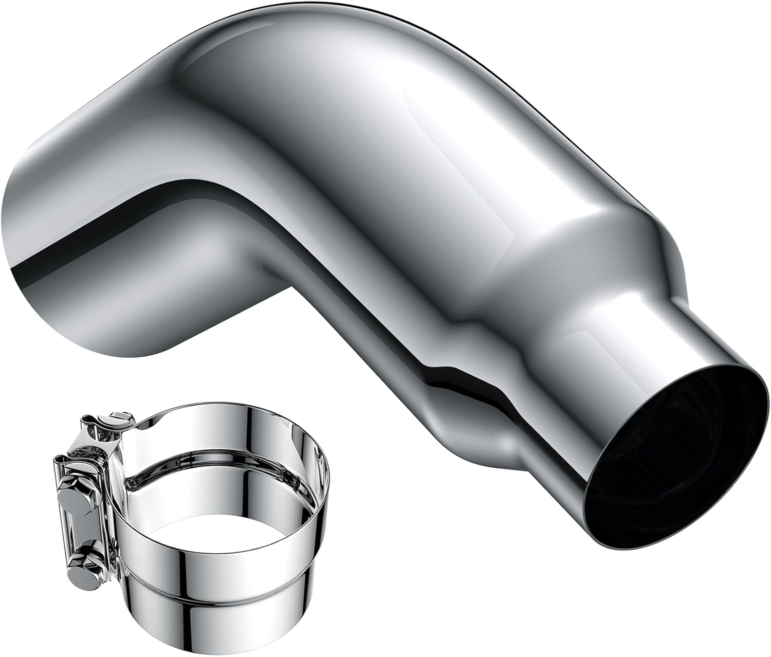 It’s a great fit if you want a visible chrome turndown that controls soot and improves exhaust routing, especially on trucks and pickups with exposed rear areas. For cleaner results, mount the tip so the outlet clears body panels and suspension parts, and tighten the clamp to manufacturer torque specs. Keep in mind that if your vehicle has backpressure-sensitive components you should verify fit and clearance before final tightening.