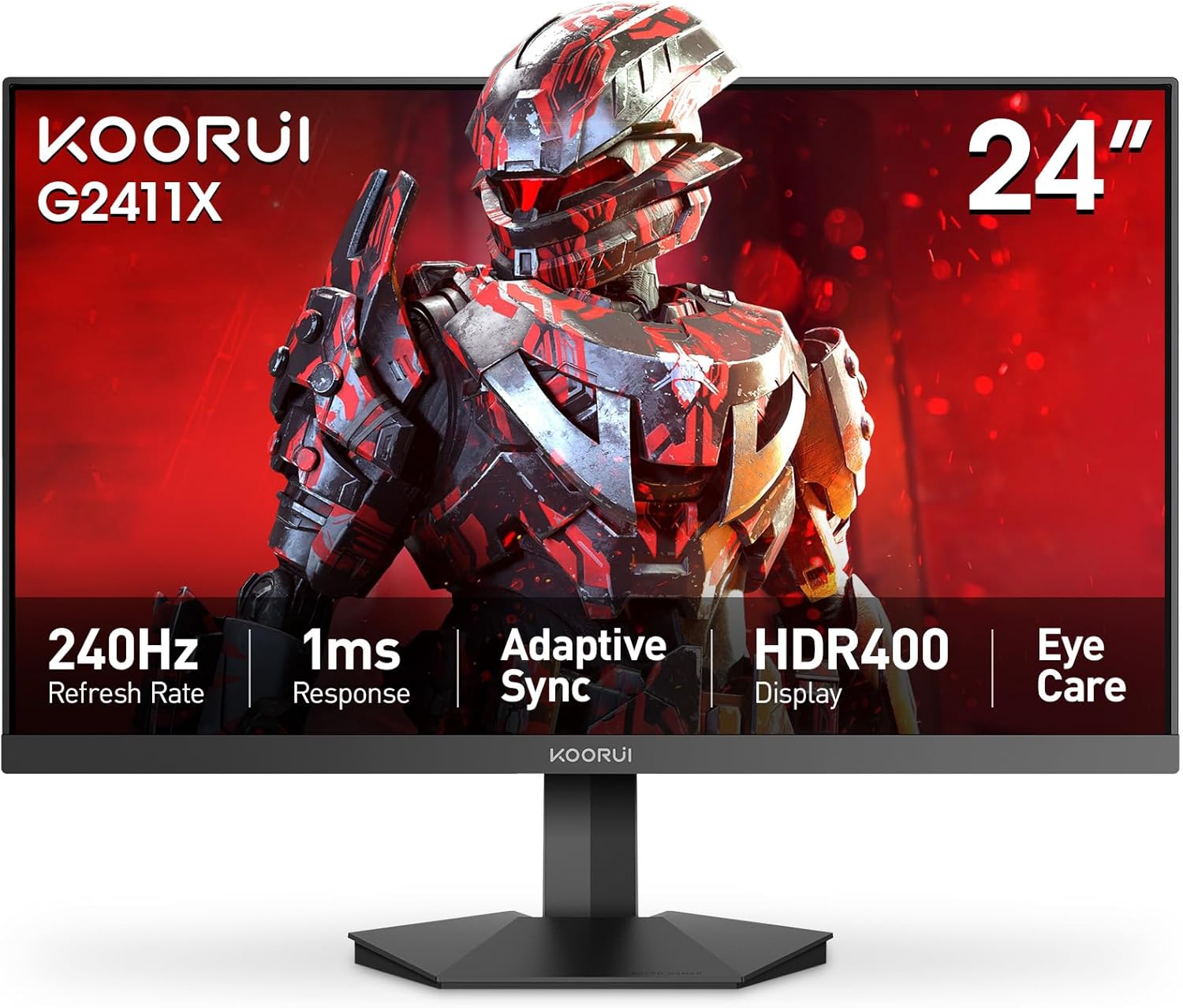 KOORUI 24" Gaming Monitor (240Hz, 1ms) with FHD HDR400, VA Panel, Adaptive Sync, HDMI 2.0 + DP 1.4