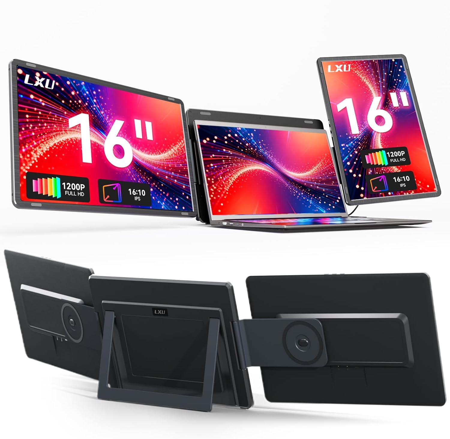 LXU Laptop Screen Extender (16-inch, 1200P, 16:10) Triple Portable Monitor for 12–16.5" Laptops