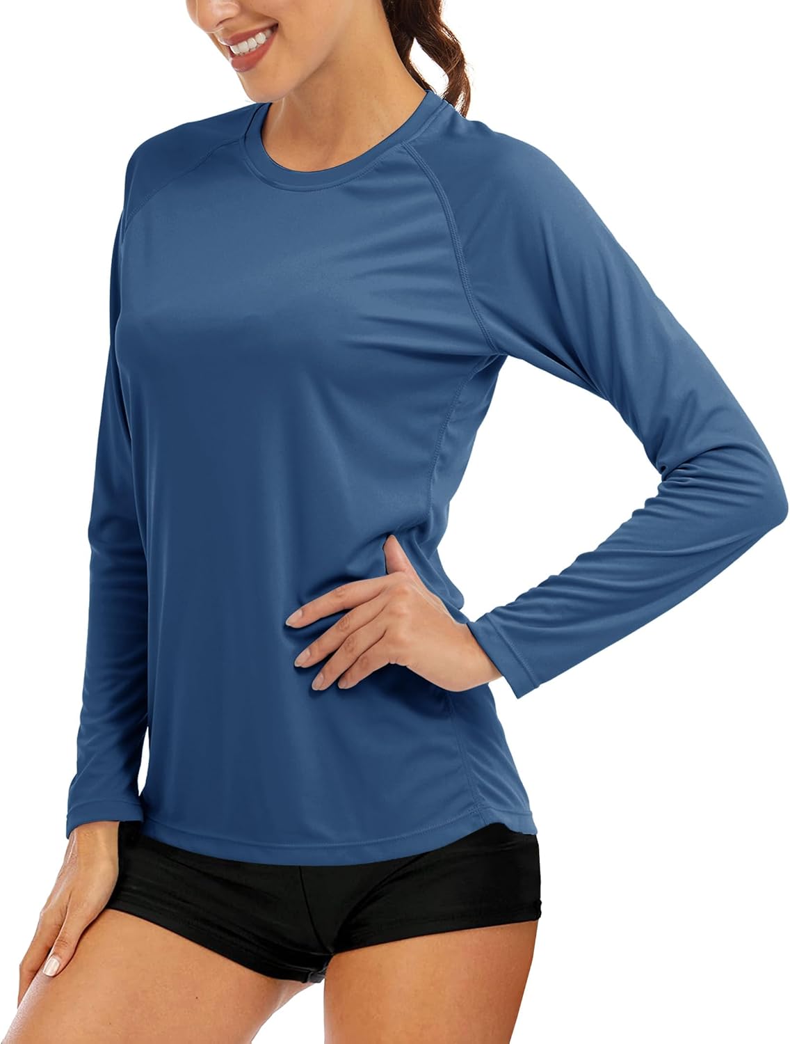 Lightweight and quick dry, this MAGCOMSEN women's long sleeve shirt delivers UPF 50+ sun protection and breathability for active days outdoors. The polyester fabric wicks moisture away and helps keep skin cool during hikes, runs, fishing trips, and gym sessions, while the classic crew neck and raglan sleeves support a full range of motion.
