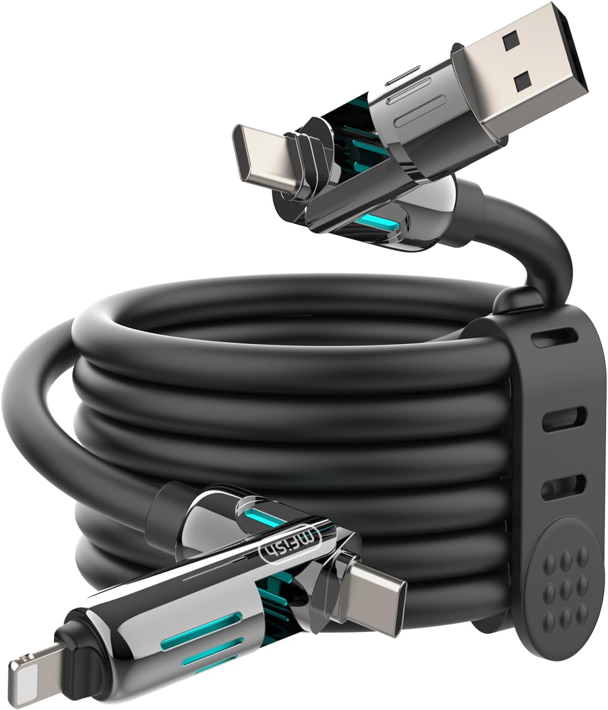 If you hate juggling multiple chargers, the MFish 240W 4-in-1 Charging Cable is built for exactly that kind of day. It’s one cable that adds several connection paths—USB-C to USB-C, USB-C to Lightning, USB-A to USB-C, and USB-A to Lightning—so you can power different devices without packing a whole drawer of cords.