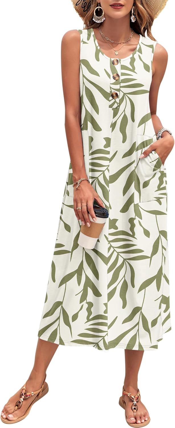 - WIHOLL Women's Summer Dress 2026: A-Line Sleeveless Sundress with Pockets (Floral/Solid)