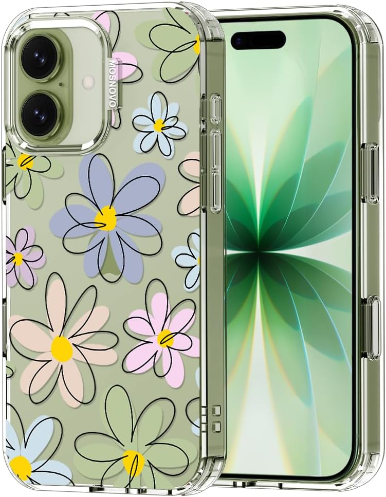 Clear cases can be a mixed bag: they look great at first, but they can feel slippery or show wear over time. MOSNOVO tries to address that with an anti-slip, easy-grip feel, plus a clear design featuring “Linear Blooms” for a more styled look than plain transparent.