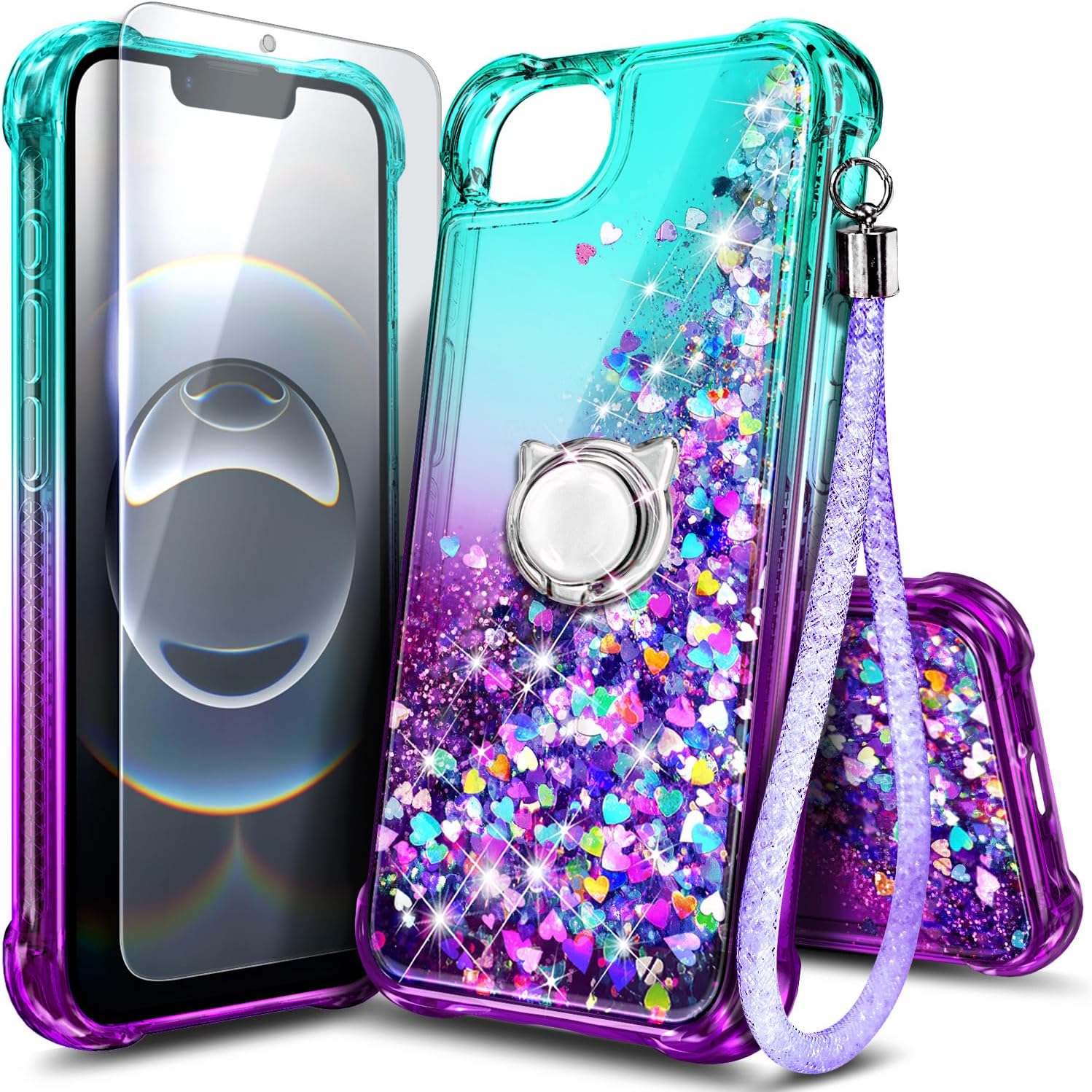 Why it makes sense: - The liquid glitter effect is dynamic—give it a gentle shake and you’ll get the swirling look (the description mentions 100+ holographic glitters). - The ring stand and wrist strap are purpose-built for convenience, not just decoration. - Tempered glass protection is included.
