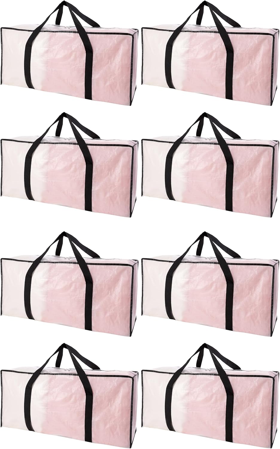 This is sold as an 8-pack of extra large moving bags with zippers and carrying handles, in a semi-transparent design. The multi-pack format is useful if you’re doing a room-by-room move, organizing categories (like linens vs. seasonal clothing), or replacing multiple smaller storage bins.