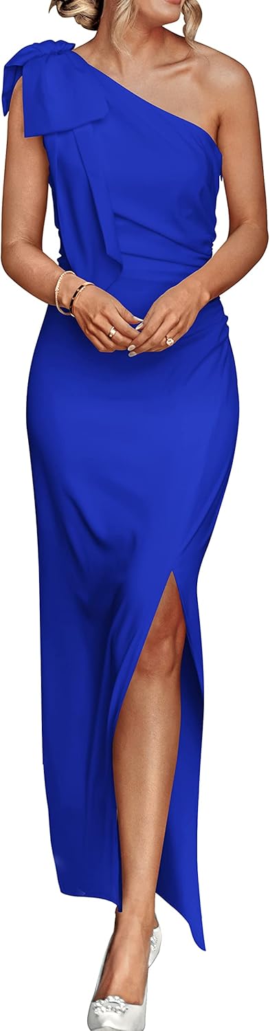 It makes sense if you want a one-shoulder wedding guest dress or formal maxi that leans bodycon and uses ruched texture plus a thigh slit for a more figure-forward silhouette. You’ll appreciate it if you like the look of long legs and want a dress that looks elevated without needing heavy styling.