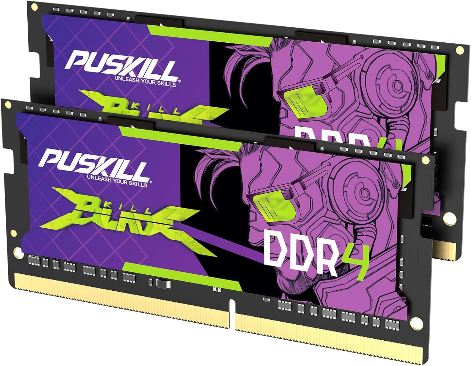 PUSKILL DDR4 Laptop RAM 32GB Kit (2x16GB) 3200MHz SODIMM CL22 1.2V — Plug-and-Play Upgrade for Intel & AMD