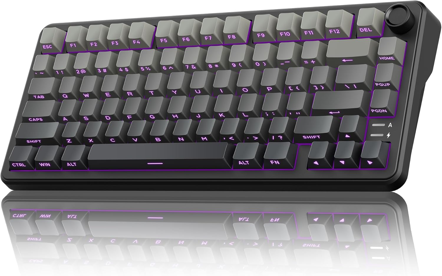 The RedThunder K75 is a compact 75% wireless mechanical keyboard designed for gamers and productive typists alike. It blends a hot swappable switch design with a gasket keyboard layout to deliver smooth, cushioned keystrokes and reduced fatigue during long sessions. With multi device connectivity spanning Windows, MacOS, 2.4G wireless, wired, and BT modes, you can switch between devices on the fly for seamless play and work transitions. The built in CNC knob adds quick control over system functions, while the gradient gray aesthetic pairs with side engraved PBT keycaps to give a distinctive, modern look that fits into any setup. This keyboard is optimized for fast typing and precise gaming, offering a creamy sound profile and reliable anti ghosting for every key press.
