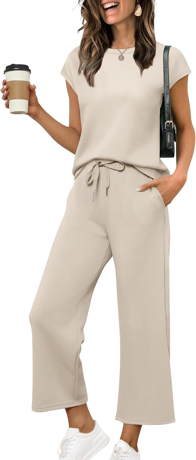 Sampeel Two Piece Sets for Women: Cap Sleeve Top & Wide-Leg Crop Pants