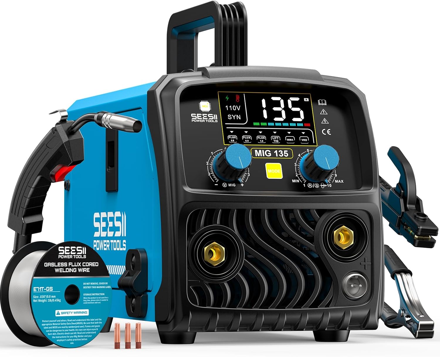 SEESII 135A MIG Welder (110V) — 3-in-1 Gasless Flux Core, Lift TIG, and Stick Welding Machine