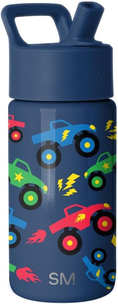 Simple Modern Kids Summit Leakproof Straw Lid Water Bottle (14oz) for School, Monster Truck Rally