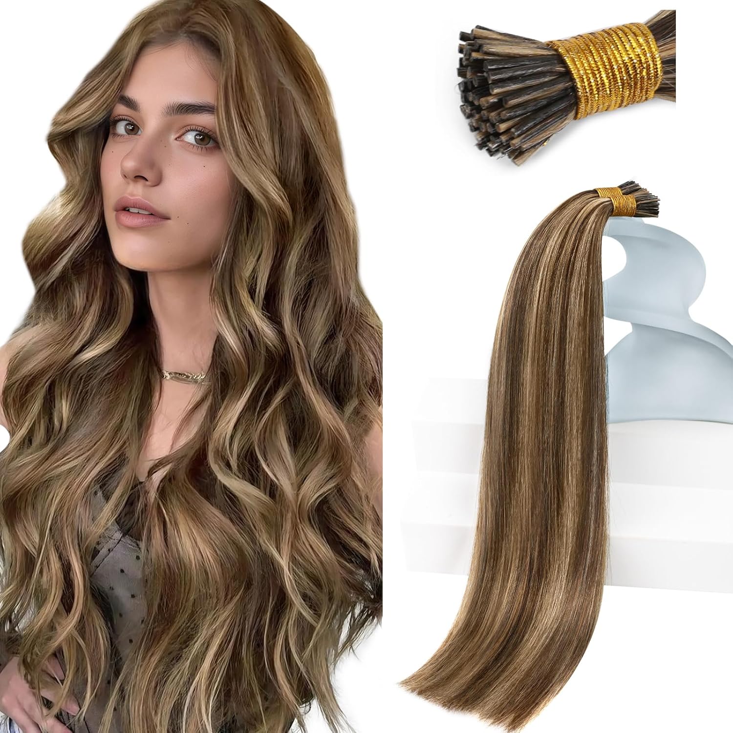 Sunny Hair 24 Inch I-Tip Pre-Bonded Human Hair Extensions (Cold Fusion), Brown Highlight/Blonde, 50g
