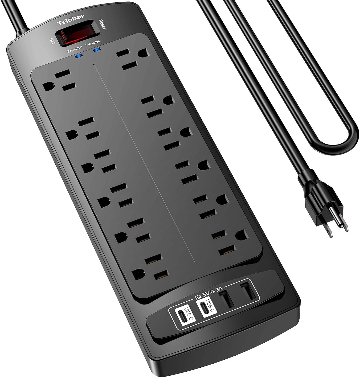 If you’re juggling a home office, dorm setup, or just too many wall warts, a power strip can make life simpler fast. The Teiobar 6 Ft Extension Cord Power Strip is built for that “everything needs a plug” reality: it combines a surge protector with 12 AC outlets and 4 USB charging ports on a 6-foot heavy-duty extension cord.