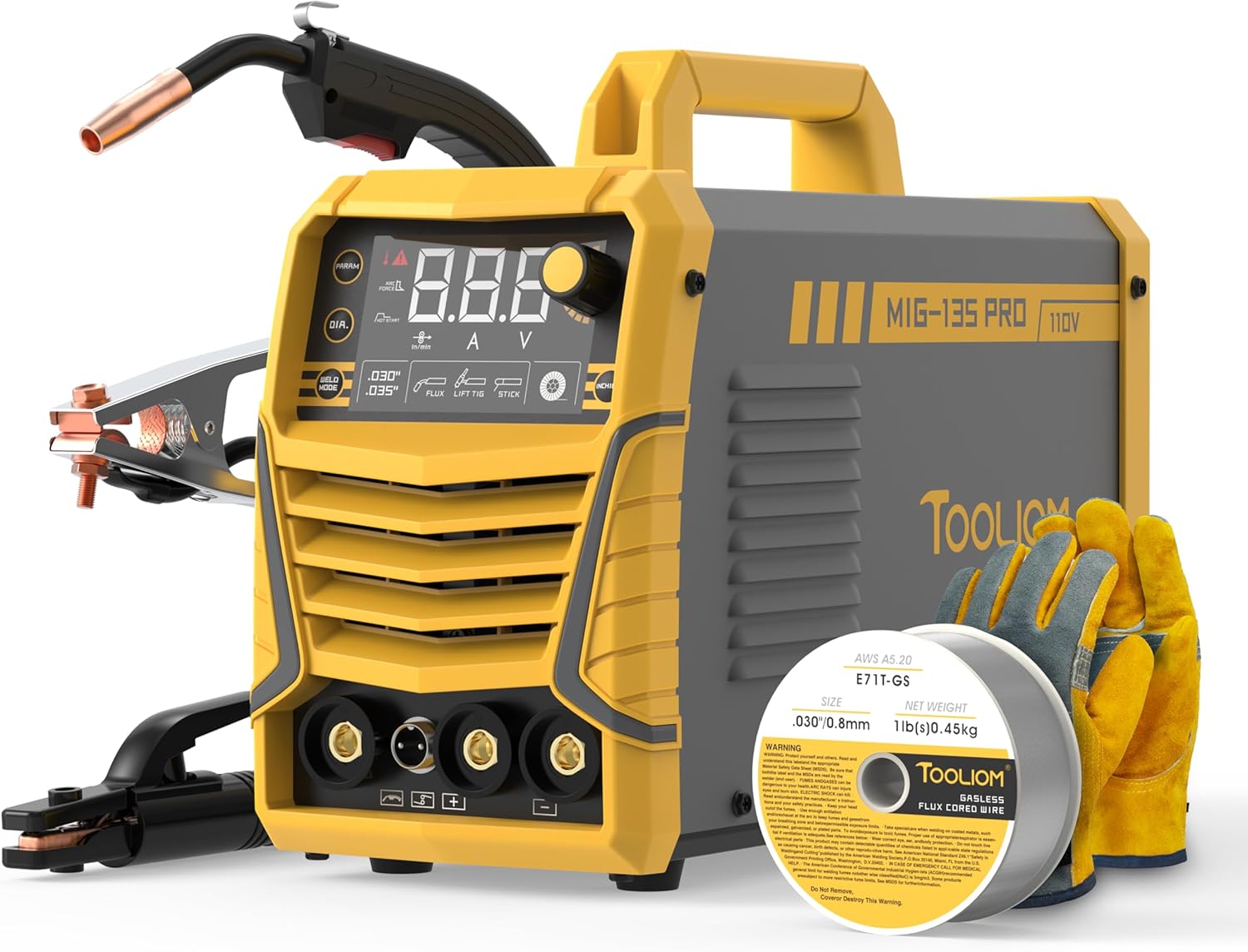 TOOLIOM 135A Gasless Flux Core MIG Welder 110V (3-in-1 MIG/Stick/Lift TIG) with LCD Display
