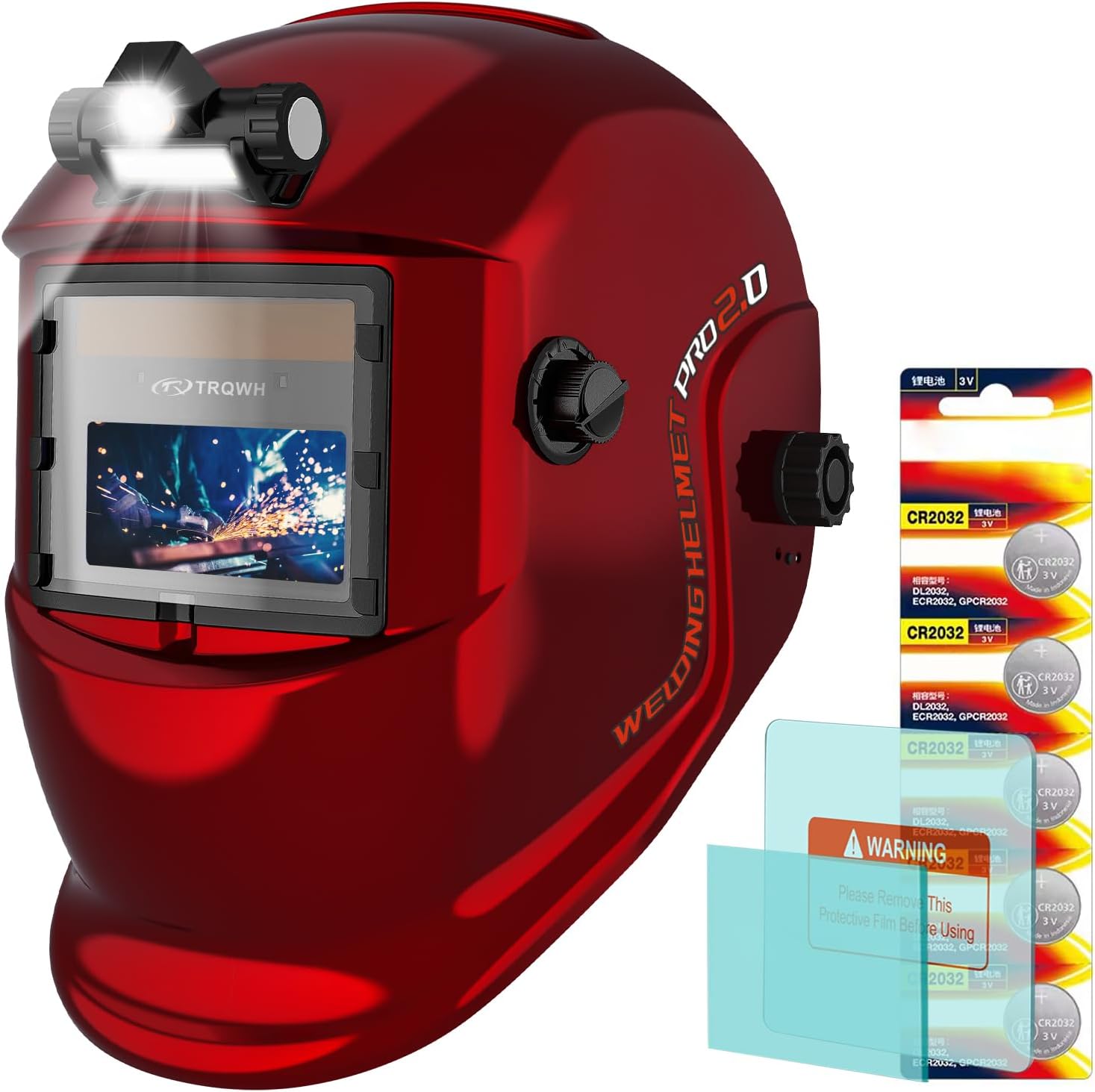 TRQWH Welding Helmet with Light True Color Auto Darkening Shield (2 Arc Sensors, 4/9-13) for TIG/MIG/ARC