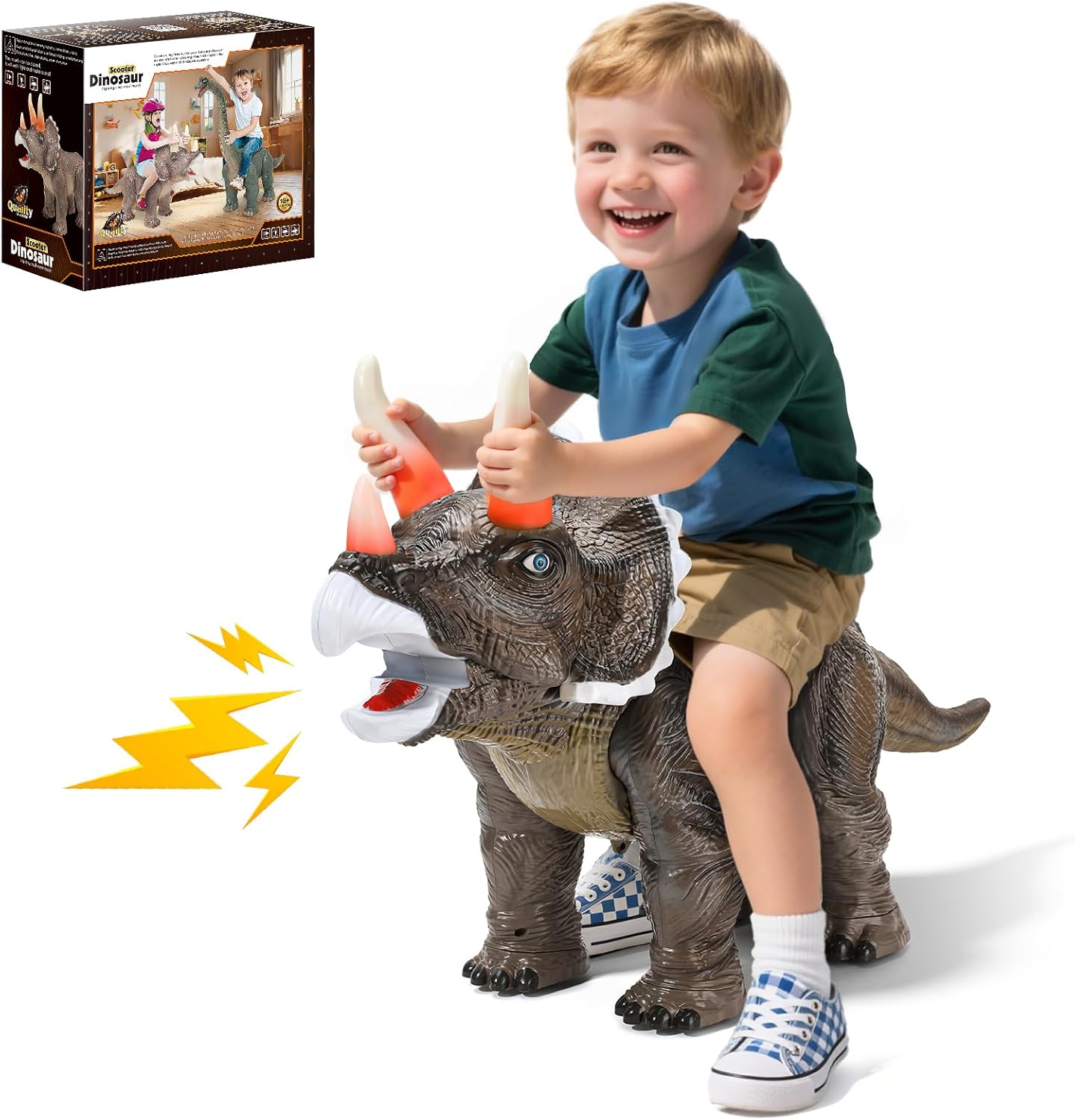 The realistic dinosaur texture is the most “sticky” feature here. In practice, that means your child isn’t only getting motion—they’re also interacting with the surface details through touch while they pretend to ride their triceratops.