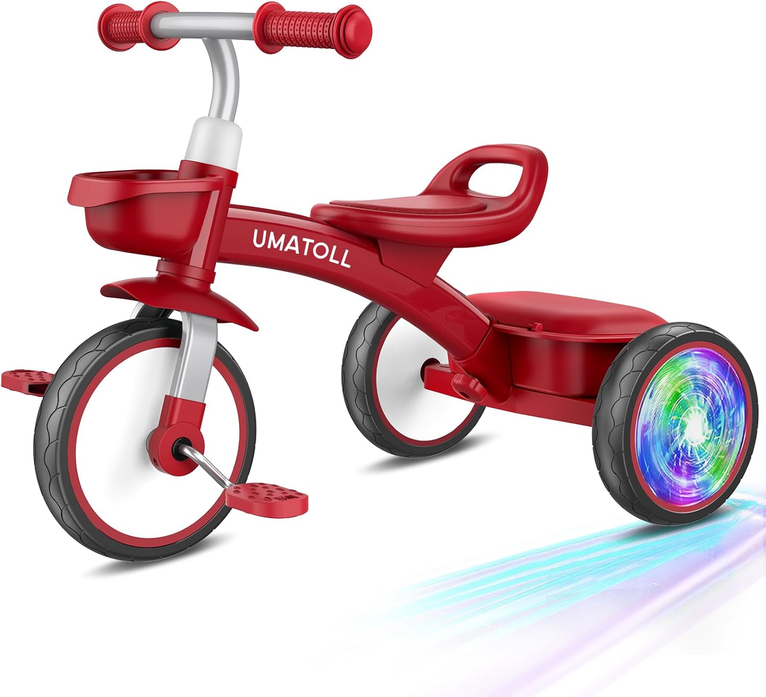 Umatoll Toddler Tricycle (18 Month–4 Years) with Adjustable Seat & Light-Up Wheels, Red
