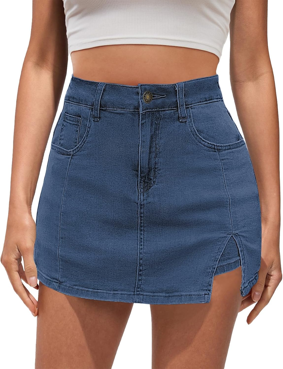 - Vetinee High-Waisted Jean Skorts for Women with Slit & Stretch Denim (Shorts-Backed)