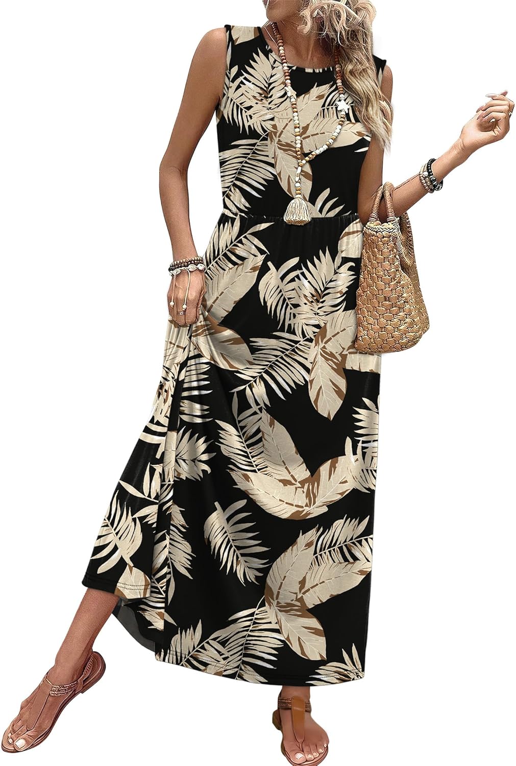 WIHOLL Summer Dresses for Women 2026 Maxi Dress with Pockets — Flowy A-Line Sleeveless Sundress