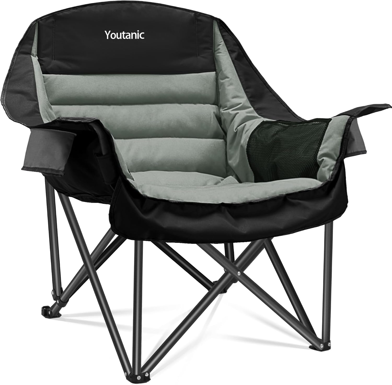 If you want to sit longer outdoors without feeling like you’re perched on something temporary, the Youtanic Oversized Camping Chair is built for that. It’s an oversized folding chair for adults with padded support where it counts, plus practical extras like cup holders and side pockets.